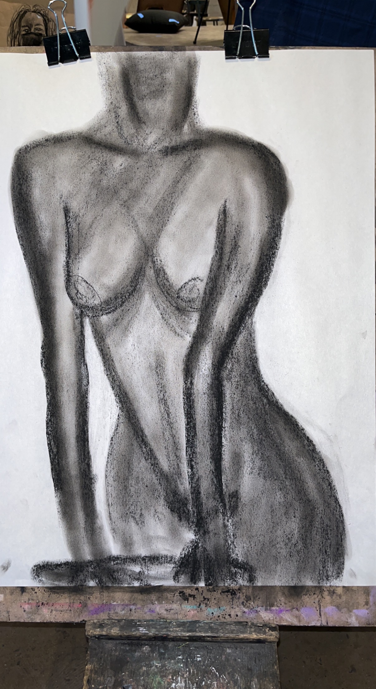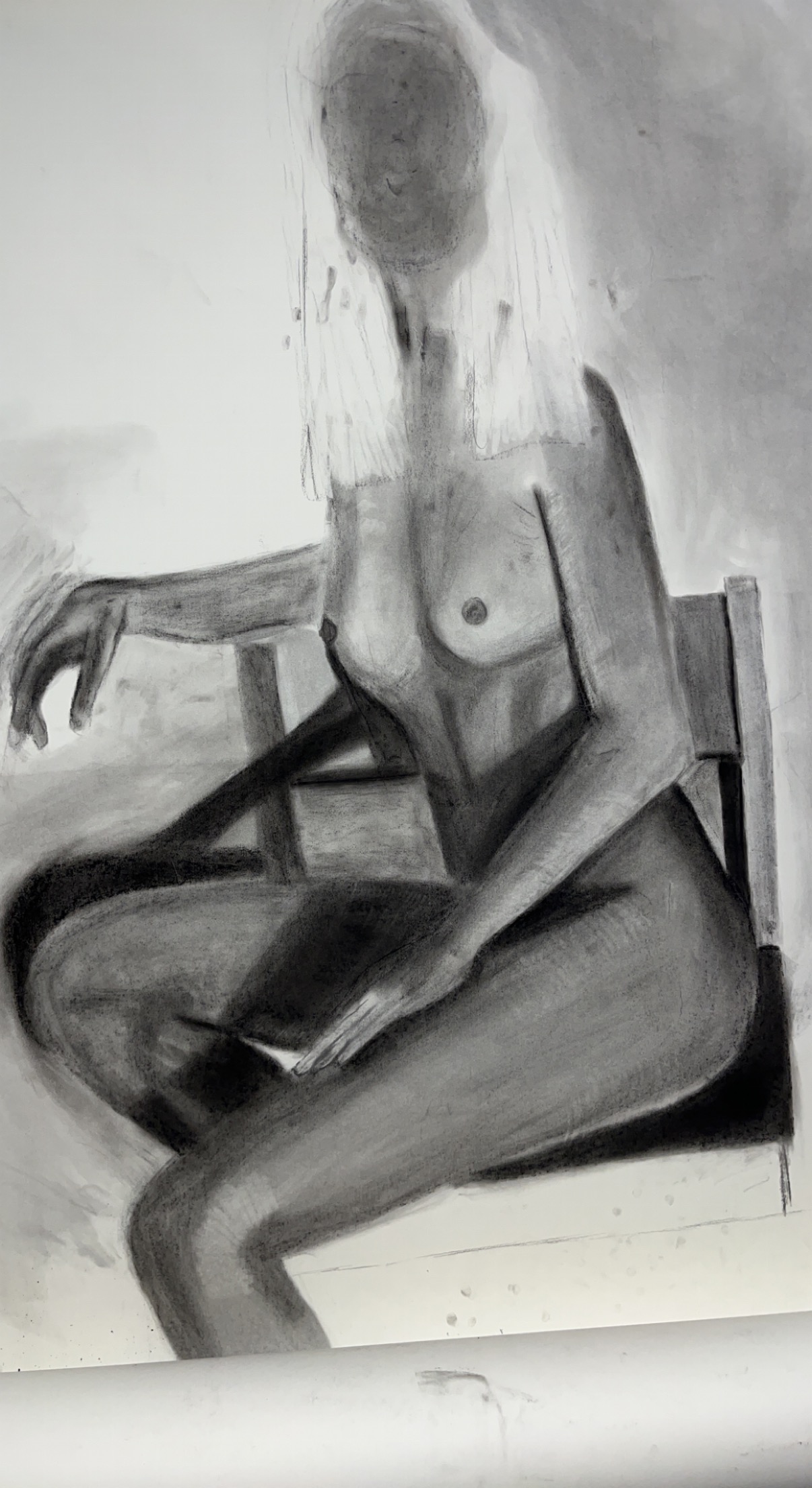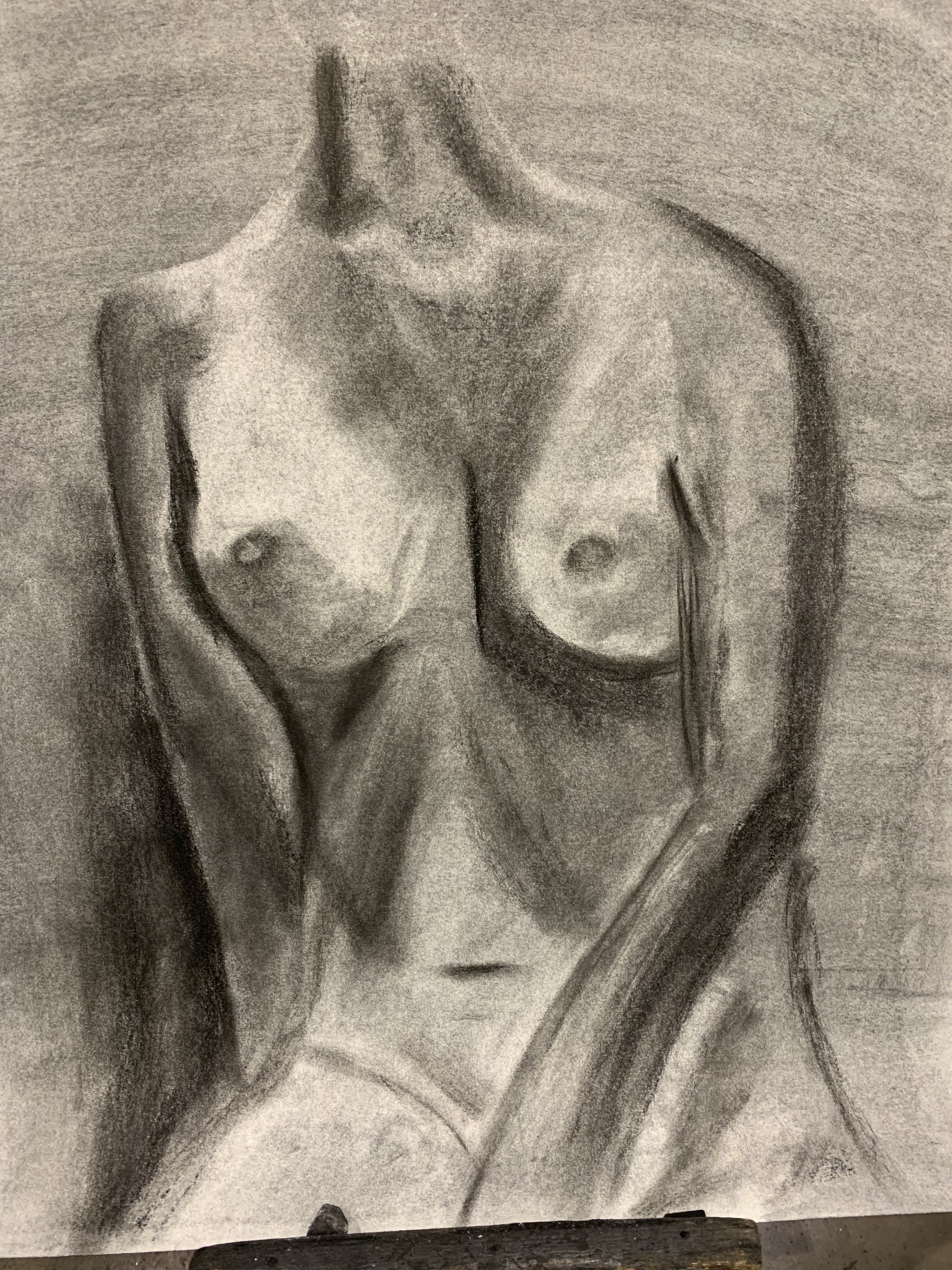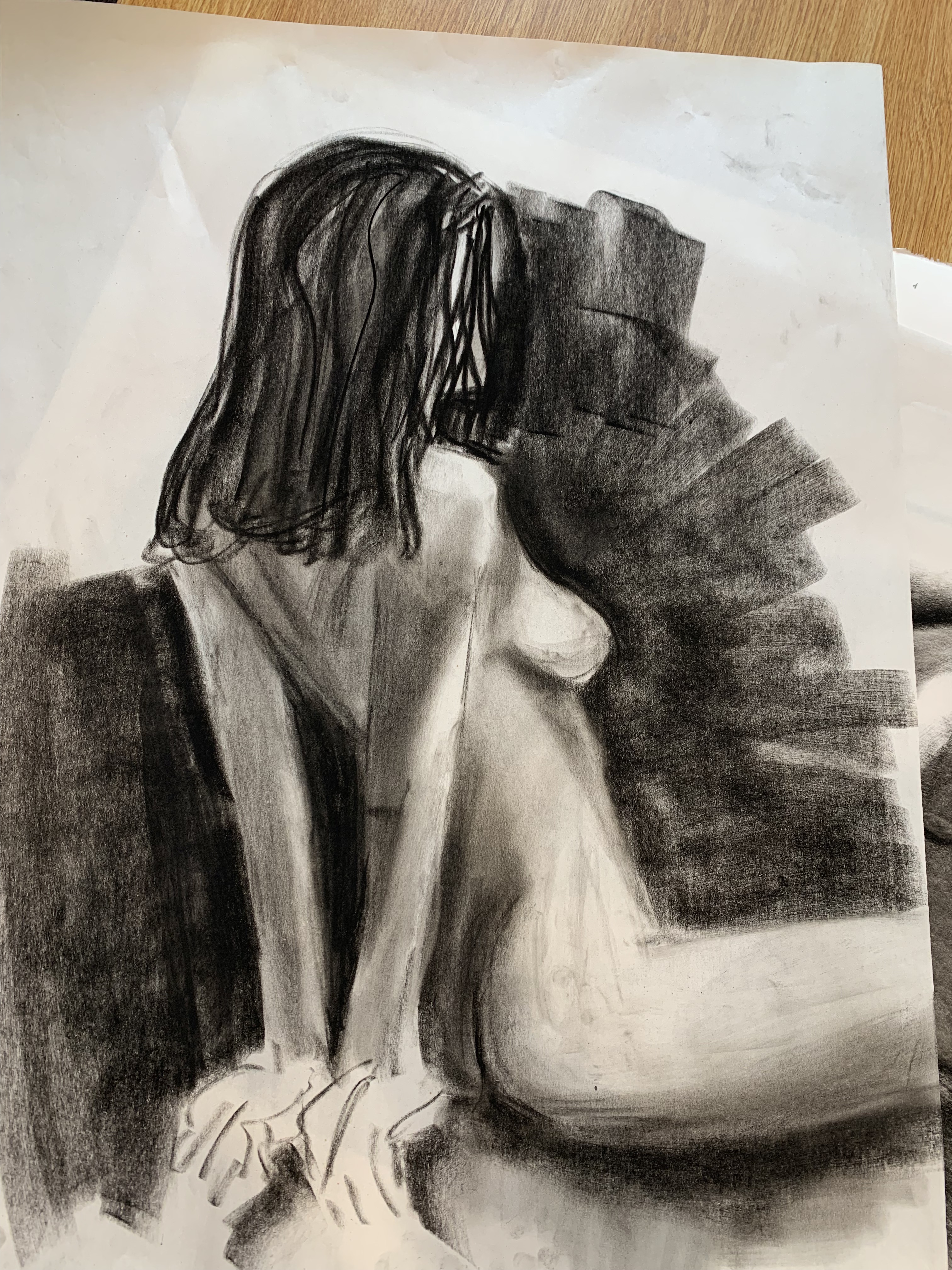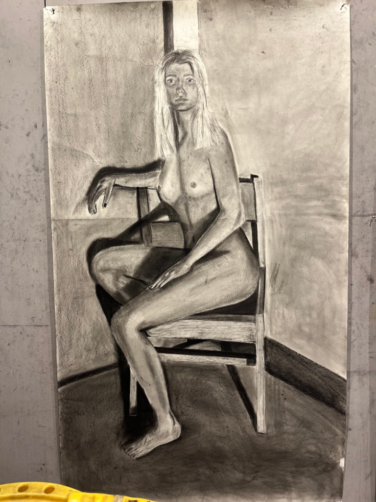 Our final piece was a life-sized drawing of ourselves, drawn with charcoal and using a mirror, not a printed out picture.