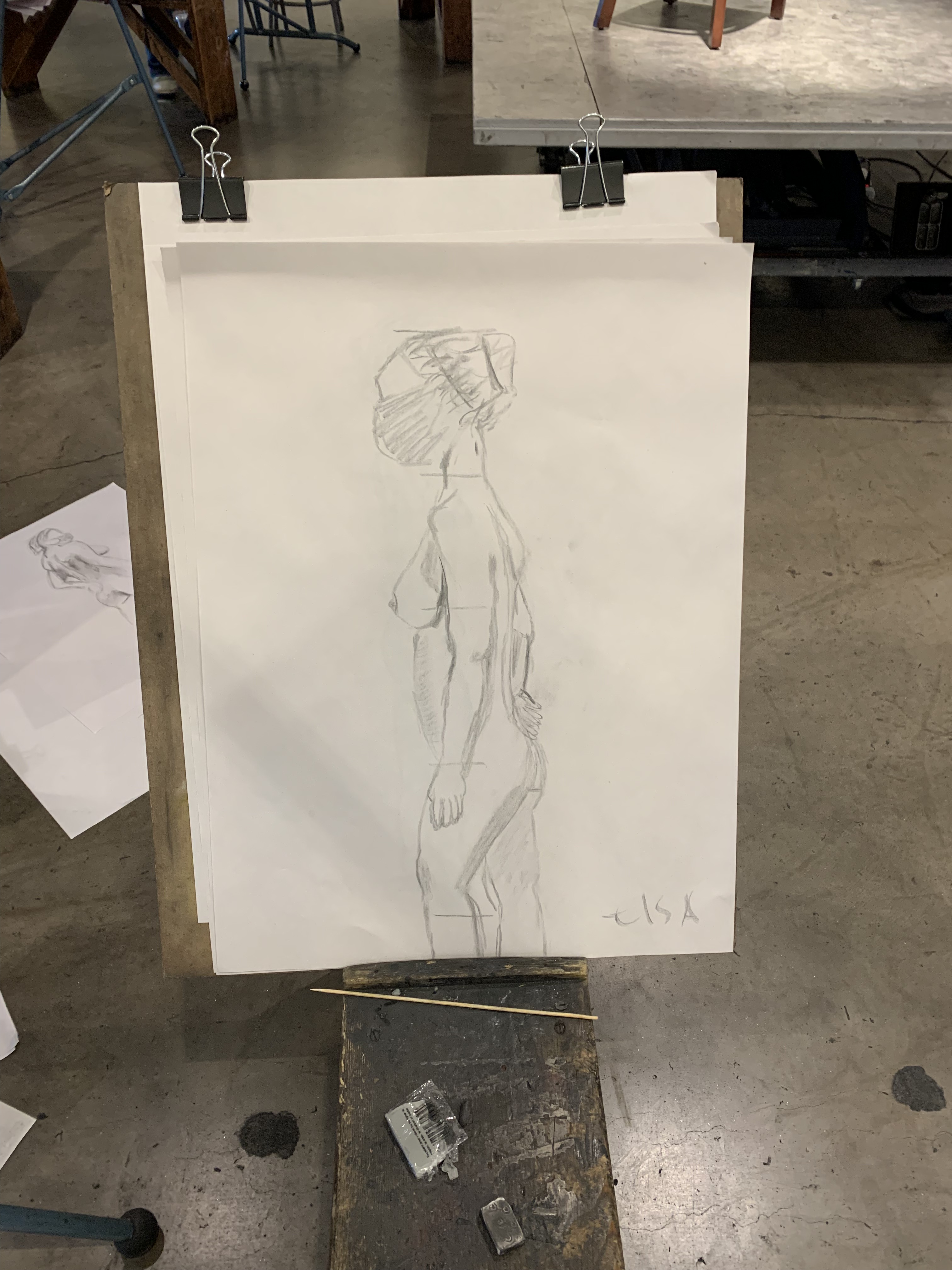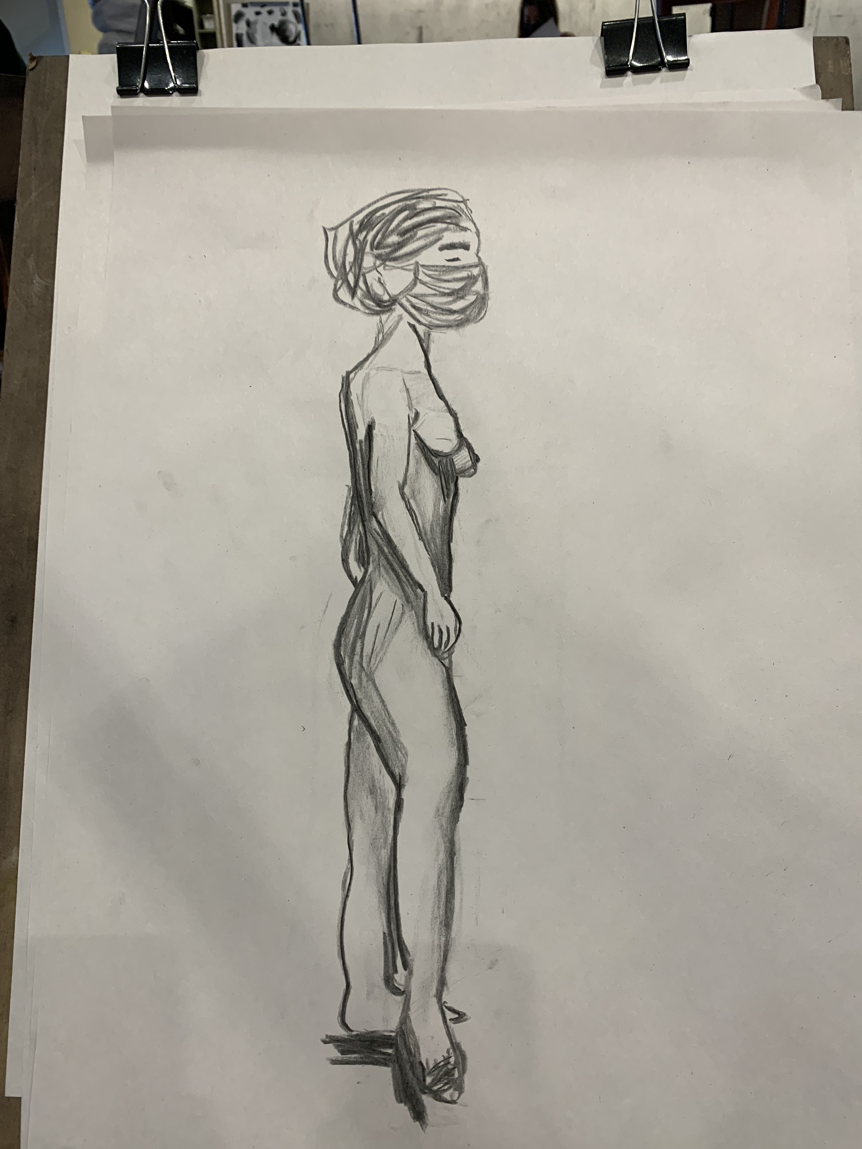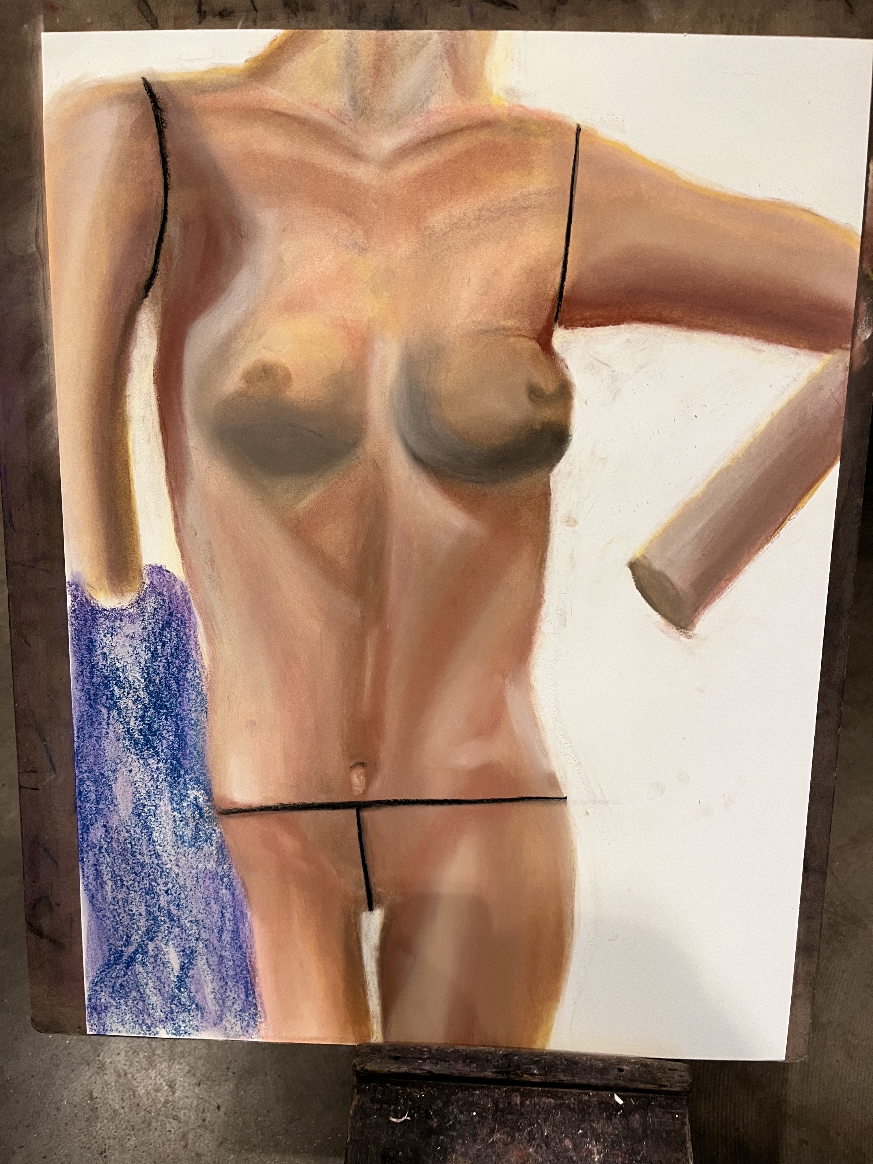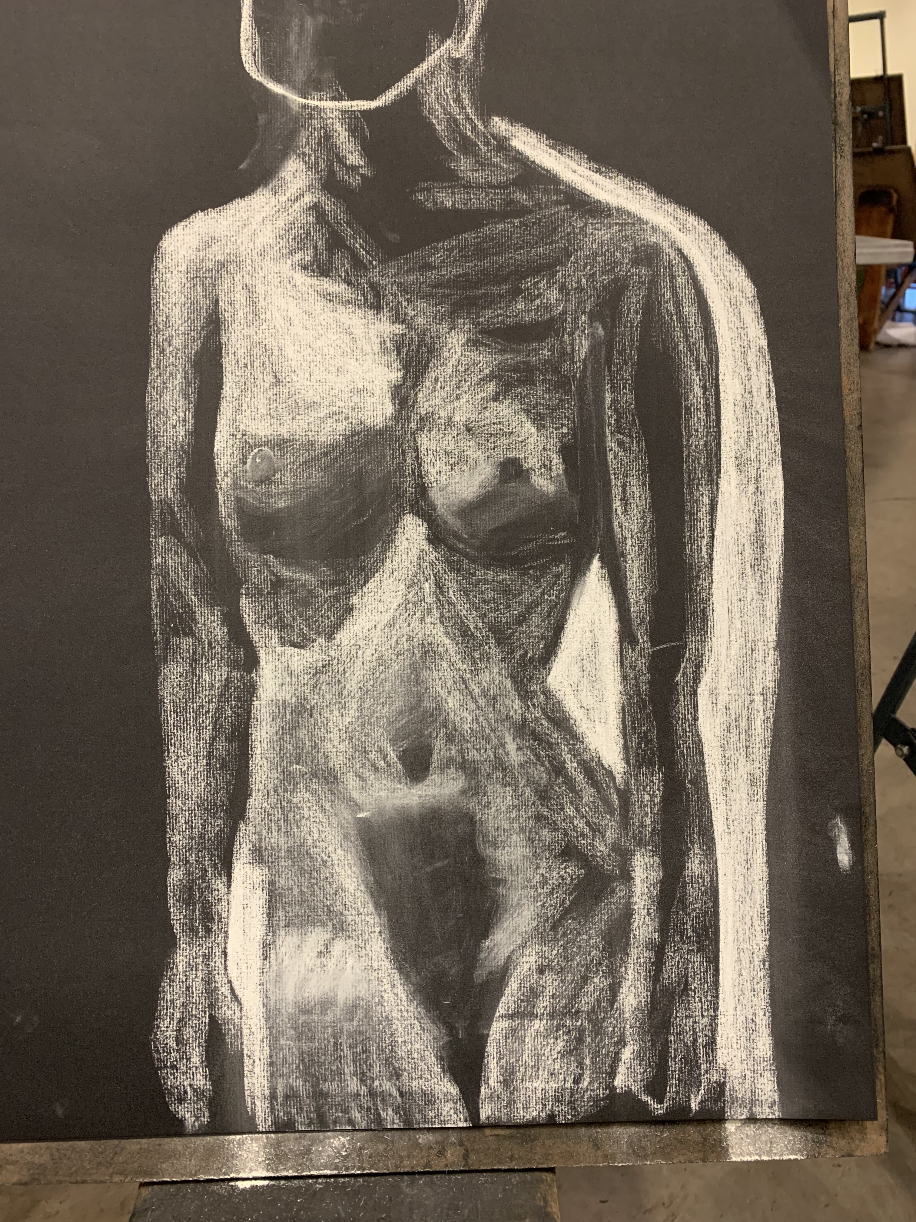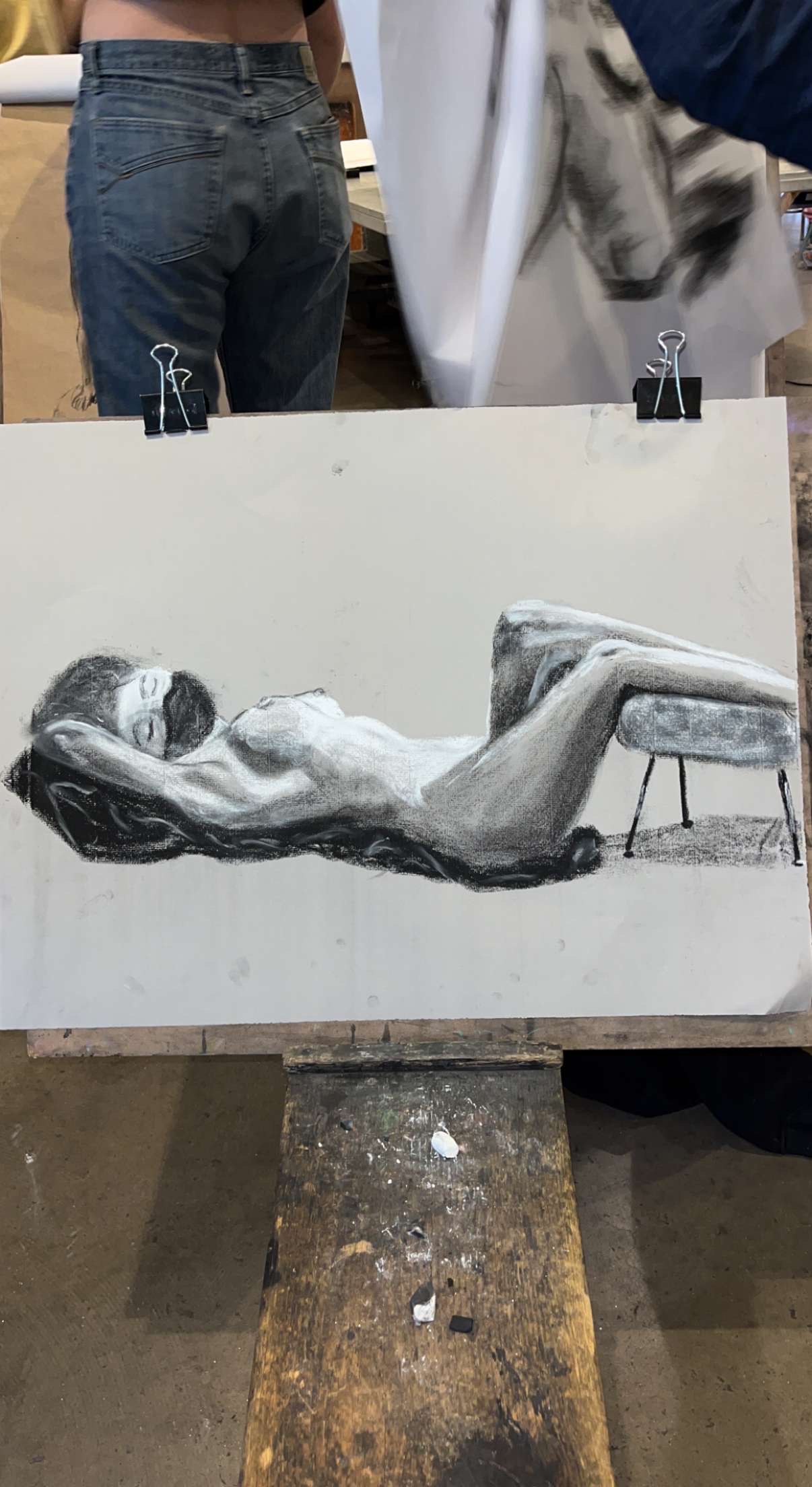 Our final piece was a life-sized drawing of ourselves, drawn with charcoal and using a mirror, not a printed out picture.